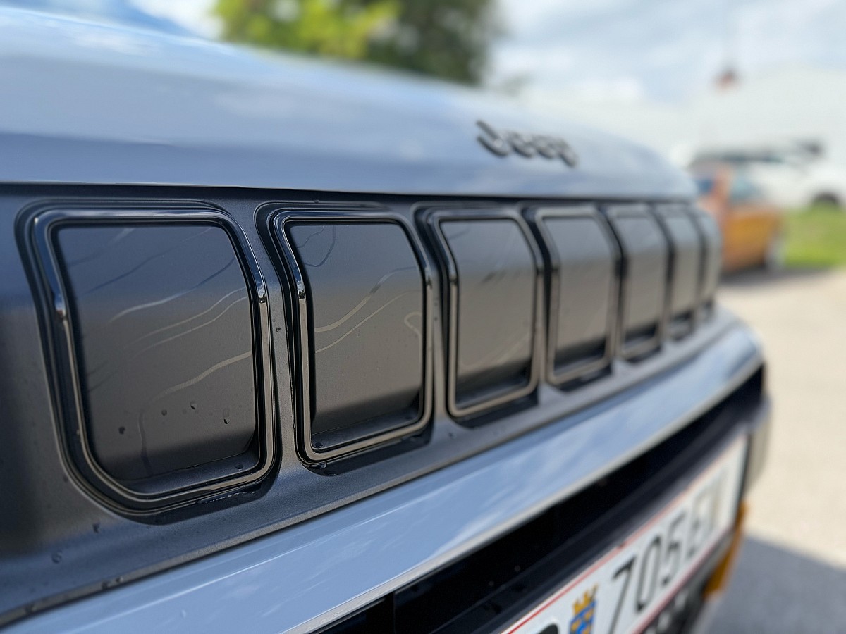 - Jeep 7-Schlitze mit topografischen Linien und glänzenden schwarzen Ringen