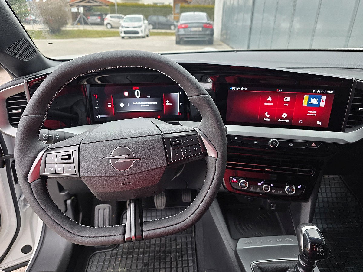 - Lenkrad aus veganem Kunstleder, unten abgeflacht
