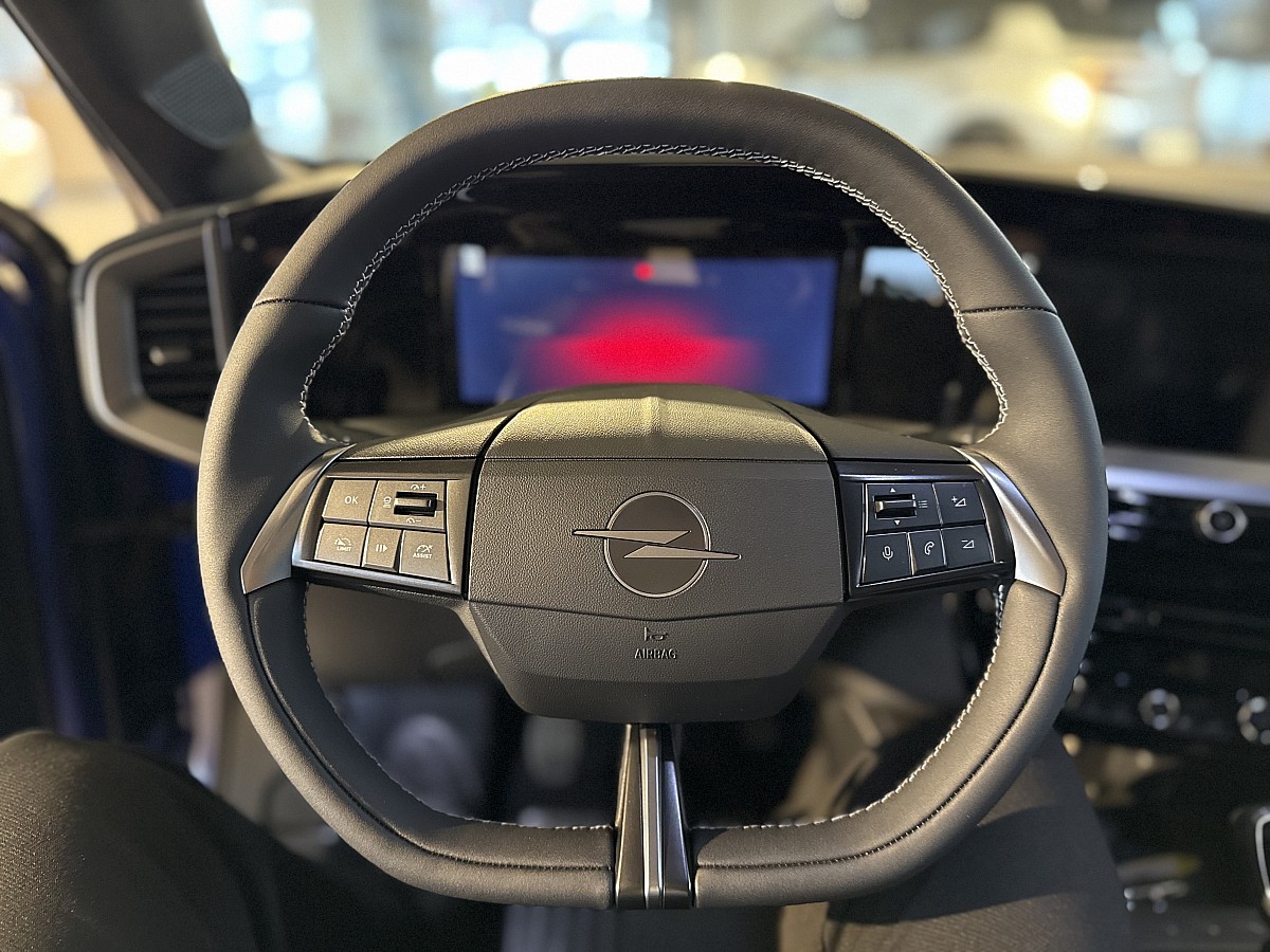 - Lenkrad aus veganem Kunstleder, unten abgeflacht