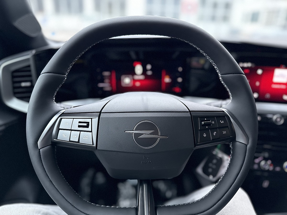 - Lenkrad aus veganem Kunstleder, unten abgeflacht