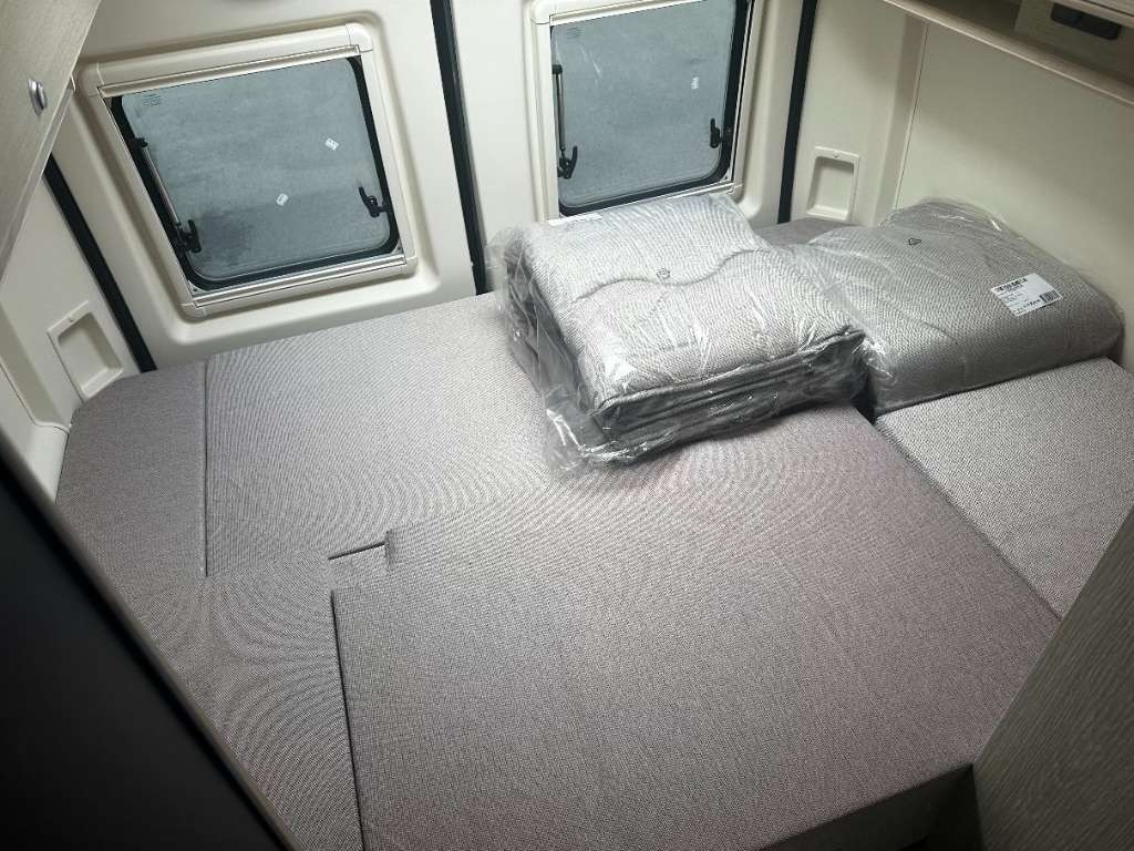 Das einzigarte und patentierte Schlafsystem bedeutet höchsten Schlafkomfort für 4 Personen. Das Bett im Heckbereich bietet eine Liegefläche von 1,90m x 1,40m in der kurzen und 1,96m x 1,90m in der langen Version. Die Maße des Frontbettes betragen 1,85m x 1,10m und sind somit perfekt geeignet für die kleineren Abenteurer unter uns.