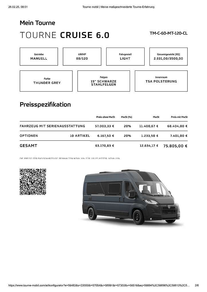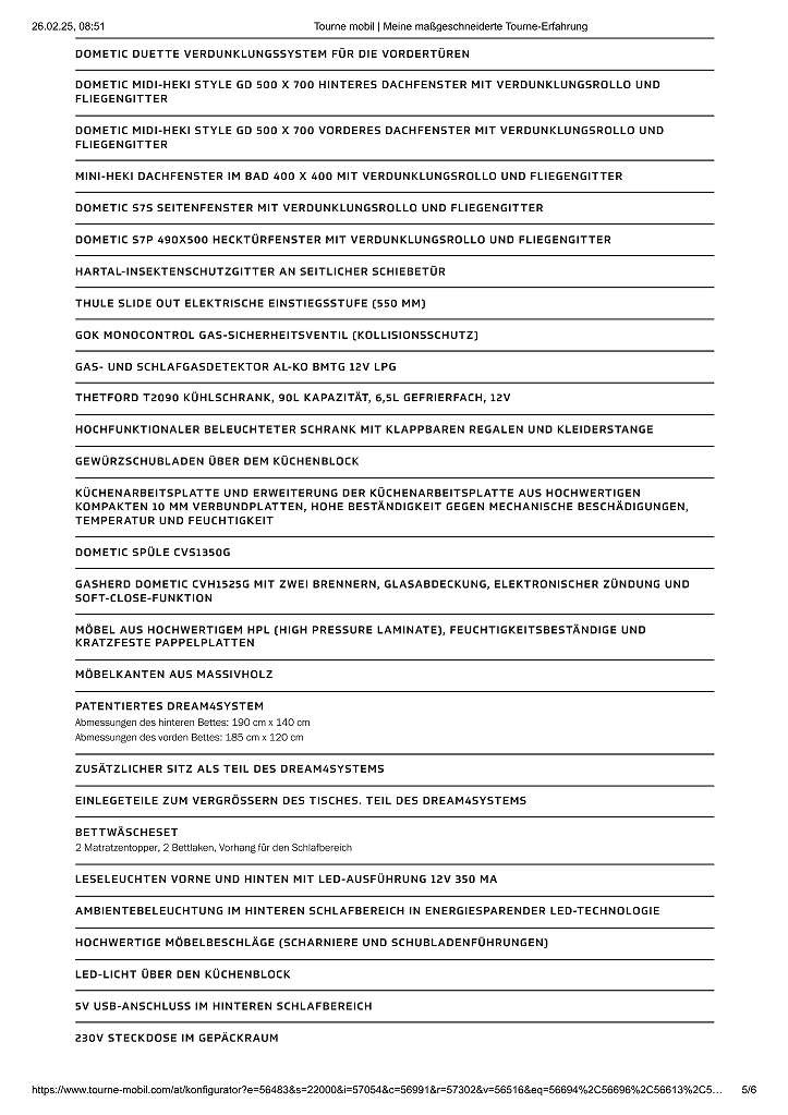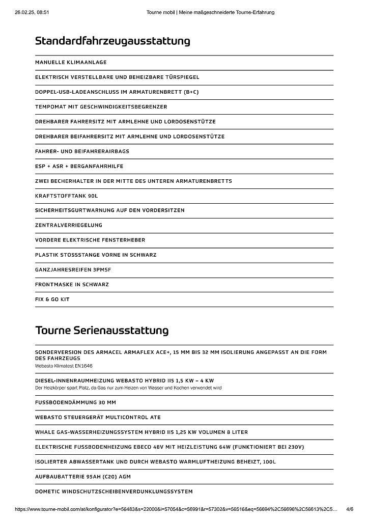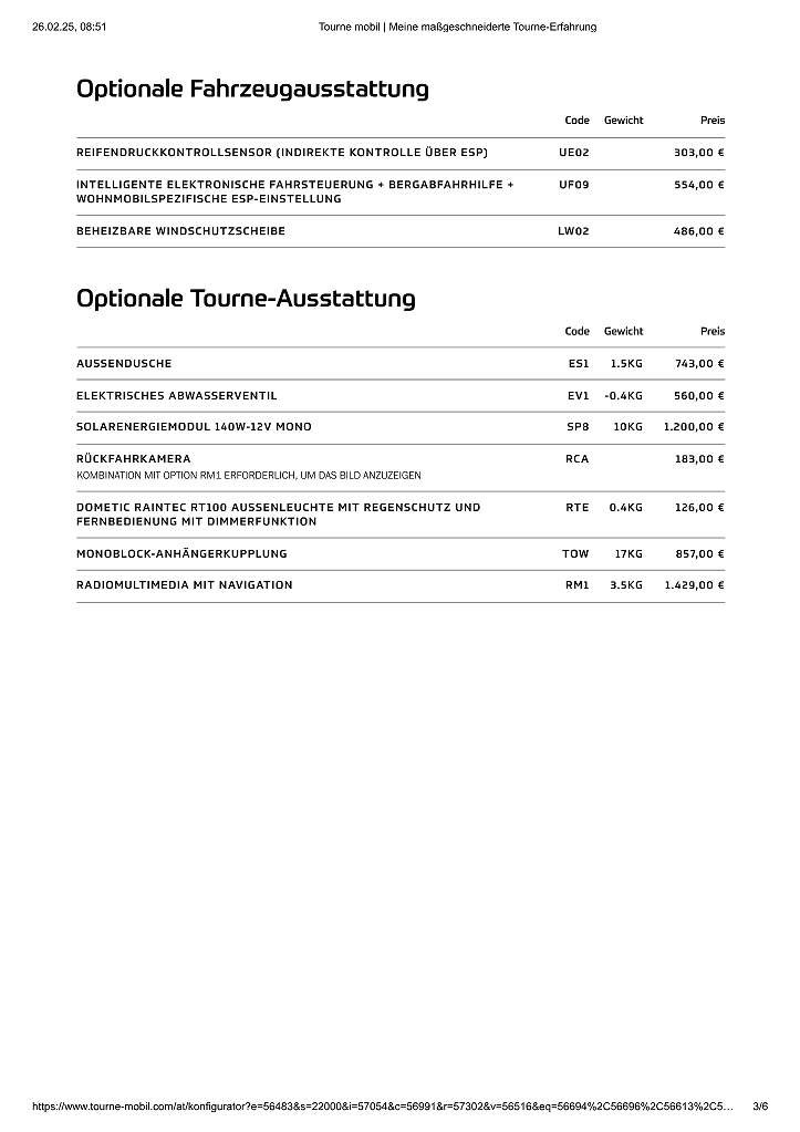 Zusatzausstattung / bestellte Optionen – Tourne: