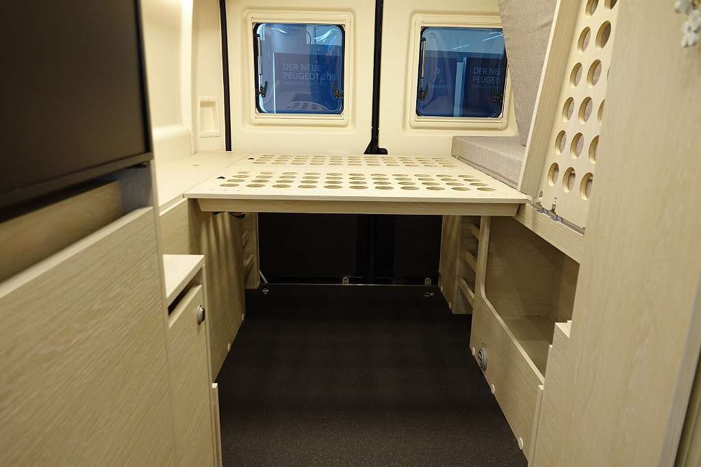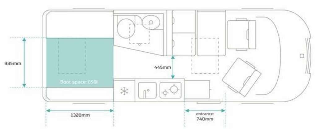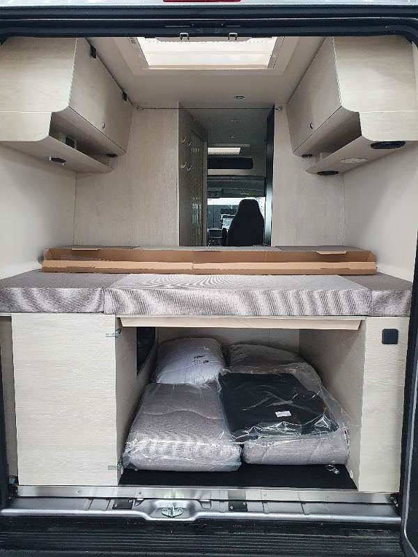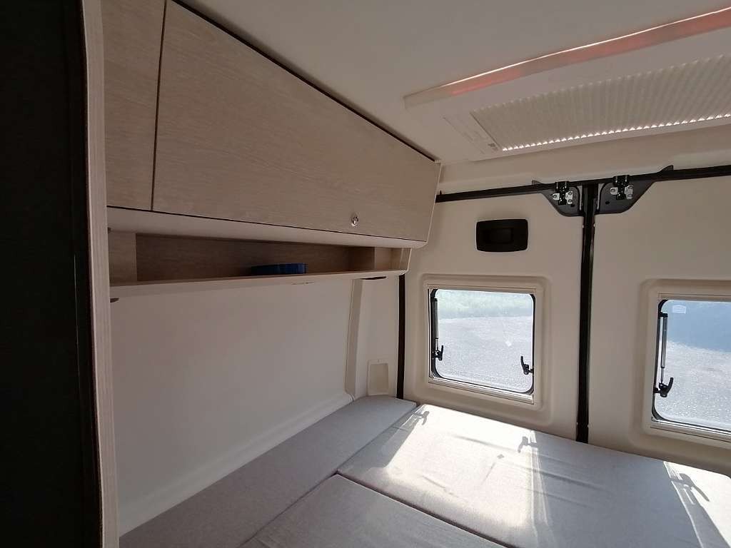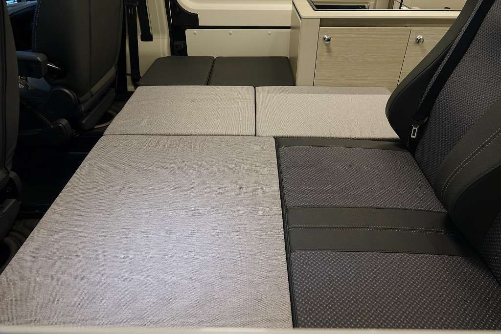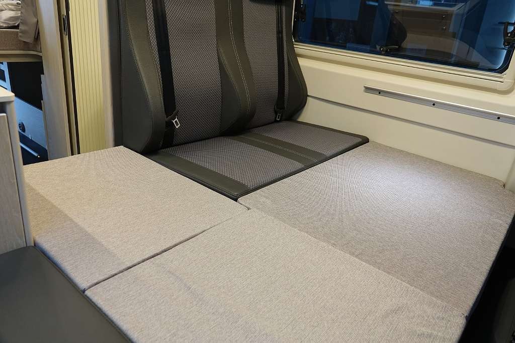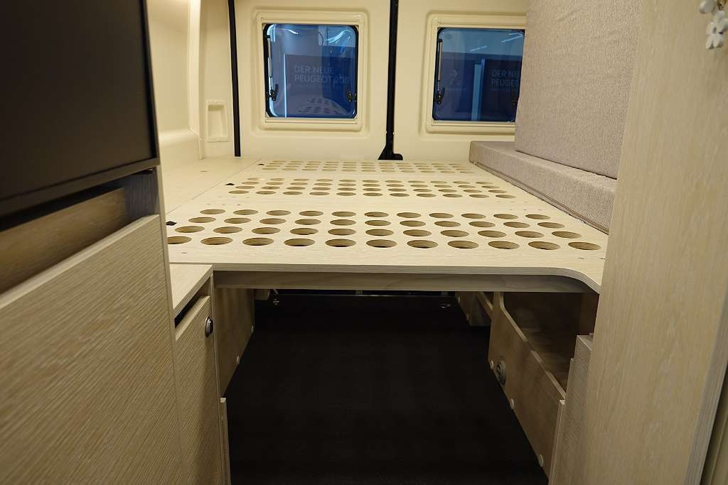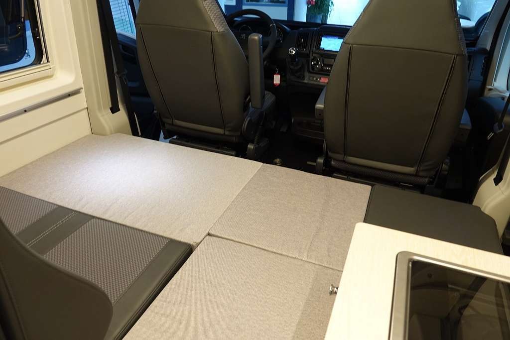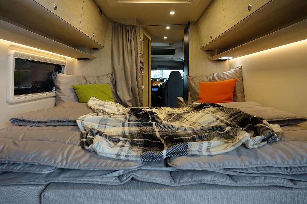 Das einzigarte und patentierte Schlafsystem bedeutet höchsten Schlafkomfort für 4 Personen. Das Bett im Heckbereich bietet eine Liegefläche von 1,90m x 1,40m in der kurzen und 1,96m x 1,90m in der langen Version. Die Maße des Frontbettes betragen 1,85m x 1,10m und sind somit perfekt geeignet für die kleineren Abenteurer unter uns.