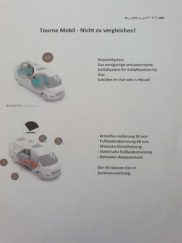 Der Tourne ist ein Reisemobil für 365 Tage im Jahr und bringt sich überall hin. Er wurde in enger Zusammenarbeit mit erfahrenen nordischen Partnern entwickelt, die besonderen Wert auf funktionelles Design, smarte Technologien und klimatische Gesichtspunkte legen.