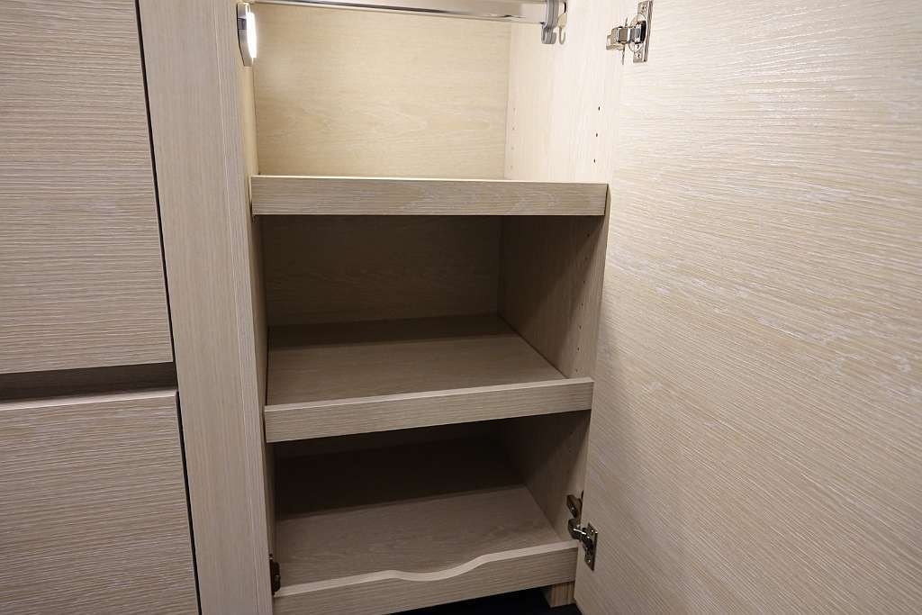 – Zwei geräumige Oberschränke für Toilettenartikel